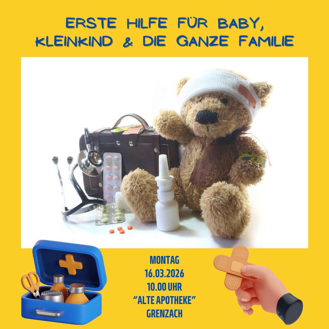 Mo16Mär10:00Mo12:00Erste Hilfefür Baby, Kleinkind und die ganze Familie10:00 - 12:00(GMT+01:00) Familientreff "Alte Apotheke", Grenzach
