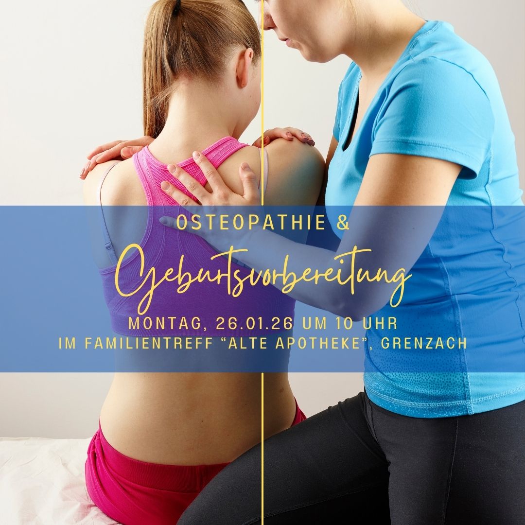 Valerie hat eine Praxis für Osteopathie und Geburtsvorbereitung und ist selbst Mutter. Sie arbeitet mit Erwachsenen, Schwangeren, Kindern und Säuglingen. Wollt ihr mehr darüber erfahren? Kommt vorbei!